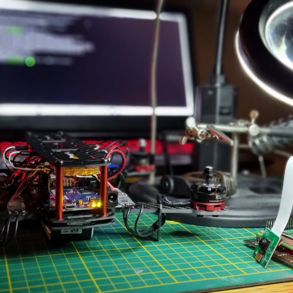 In 2017, Arugga AI Farming, located in Israel, invented a pollination robot that works on a straight rail, which questioned us: why not build a flying pollinator? The goal is to build the colonies of AI drones that will perform the role of pollinators to sustain the ecosystem. For the flower recognition technology, YOLO architecture is utilized and set up by OPEN VINO. Individual drones are PID- controlled with an AI autopilot system. To minimize the workload of the image processing, The drone is designed to use two different microcontrollers. Arduino (Leonardo) controls the roll, pitch, yaw, and throttle of the body, while Raspberry Pi (4 model B) manages the automated navigation commands. Additionally, the unique communication method inspired by the fighter jets is planned to be implemented to the AI drones. The fighter jets during the formation flight do not have a direct connection with the control center. However, one jet connects to the closest jet, and the jet that receives the signal connects to the other, such that the entire squad creates a communication web. Adapting this technology using the radio module allows drones to connect limitlessly and be deployed to any wide region. Regarding the sustainability of the drone, a 12V solar panel will be attached to the body, and feed the power back to the lithium Lipo battery. This way, the drones can perform the job without external help to get the power supply. As for the modulations of the battery voltage, DC/DC converter and the solar charge module will be utilized.