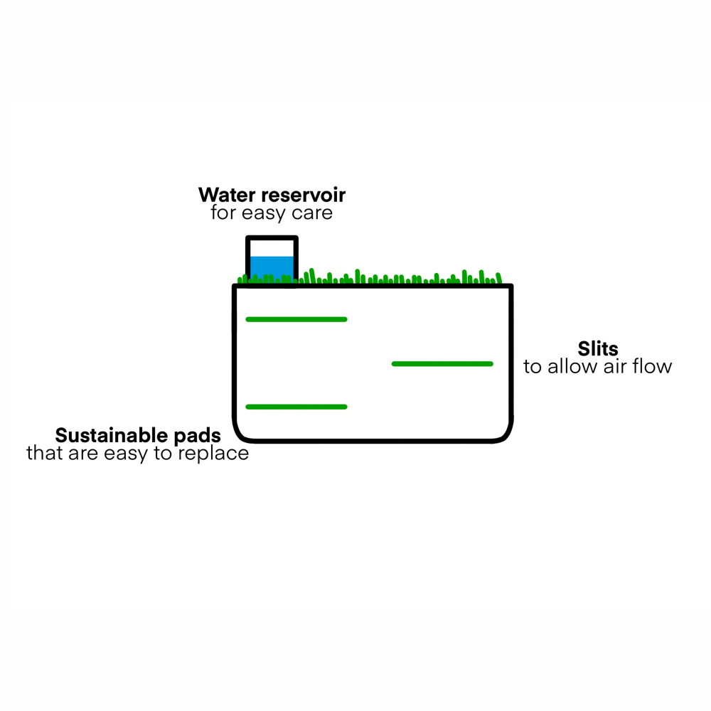 Moss is an excellent air cleaner due to its high surface area and low volume. With the MossPot, we use moss as an easy-care, low-tech air cleaner.