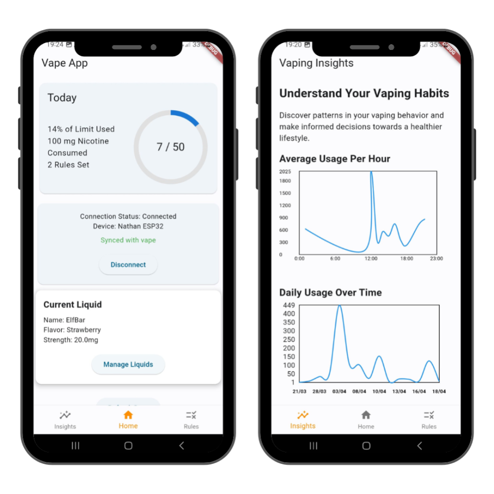 Our solution is akin to having a 24/7 personal fitness coach and dietitian for your nicotine habits—constantly at your side, offering guidance and encouragement to make healthier choices that align with your goals. Inspired by Peter Drucker's principle, 'What gets measured gets managed,' our smart vape system tracks usage patterns with precision, enabling users to take informed steps towards reducing their nicotine intake. It combines effortless monitoring with the power of personalization; users can set their own usage limits and goals, ensuring that even in moments of weakness, the device provides the necessary support to adhere to their objectives. This blend of tracking, personalization, and adaptive feedback empowers users to manage their nicotine dependence proactively, transforming the journey into a series of achievable, guided steps towards a healthier lifestyle